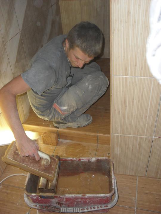 7.9. - spárování obkladů, obkládání wc, nákup barev atd., škrábání kuchyně a penetrování