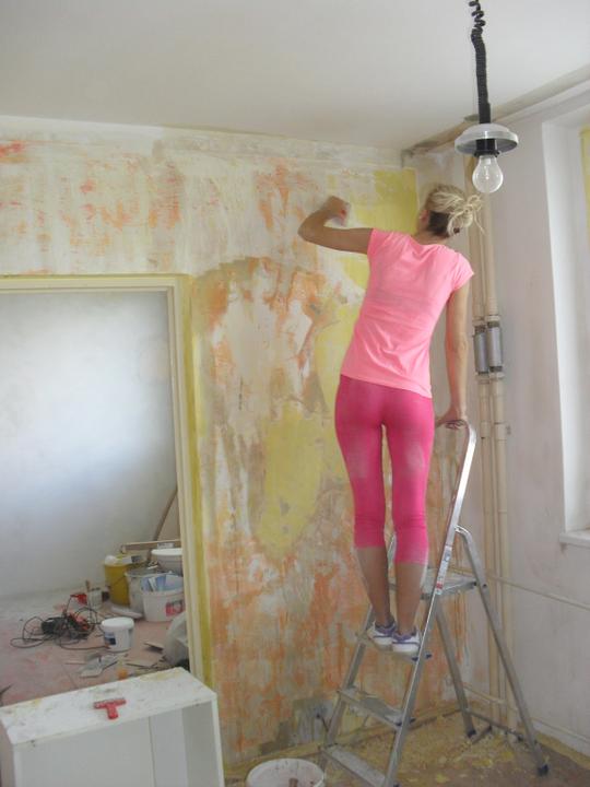 8.9. - odvoz další sutě, první vymalování kuchyně, oškrábání a napenetrování obýváku, vyklízení předsíně