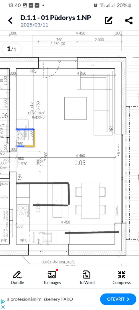 @vitkalivoda nevadilo by vám poslat foto jak to m… @sara_brab kuchyne je uz hotová, ale jeste neni namontovana, to bude az kolem 15.2.25. Aspon posílám planek, pod pultem a v rohu budou prosklené osvětlené vitríny, program neumí nakreslit. V planovaci ikea se to da krásně zpracovat a vypada to realisticky. Mezi okrajem poloostrova a hs portálem musíte mit misto cca 200cm, at se da sedět kolem stolu, uvádí se aspon 60cm z kazde strany a vy tam mate vice místa nez my. Zvažte toto uspořádání, budete mit snidanovy bar a kolem stolu fakt hodně místa. A zároveň vam zůstane vice místa v obýváku.Odpověď na příspěvek od artep1987: