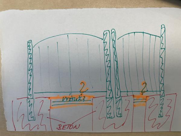 Zdravím všechny. Měla bych na Vás prosbu. Budeme betonovat novou branku + bránu (kovaný materiál z profilů - brána váží 40kg) včetně sloupků (sloupky budou 65cm v zemi). Již máme vybagrovanou díru (bagrista se trochu rozšoupl a 1 díra na 1 kovový sloupek 8x8 cm je 1,1 m hluboká a základna 1m x 1,5 m). Máma to na pozemku dost mokrý.... Plán je, že do spodu základen nahážeme kameny a pak pozveme mix na betonování. Spojili byste ještě jednotlivé výkopy podélným výkopem pod bránou a zebotonovali? Popřípadě v jaké hloubce? A dávali byste do země ještě nějaké roxory na zpevnění na to podélné spoje. A další dotaz je, že nám bylo řečeno, ať to zabetonujeme vše najednou, tedy sloupky vč.brány. Lámeme si hlavu s tím jak vše zafixovat, aby se nám to při betonovàní nehlo? Moc děkuji za radu.
