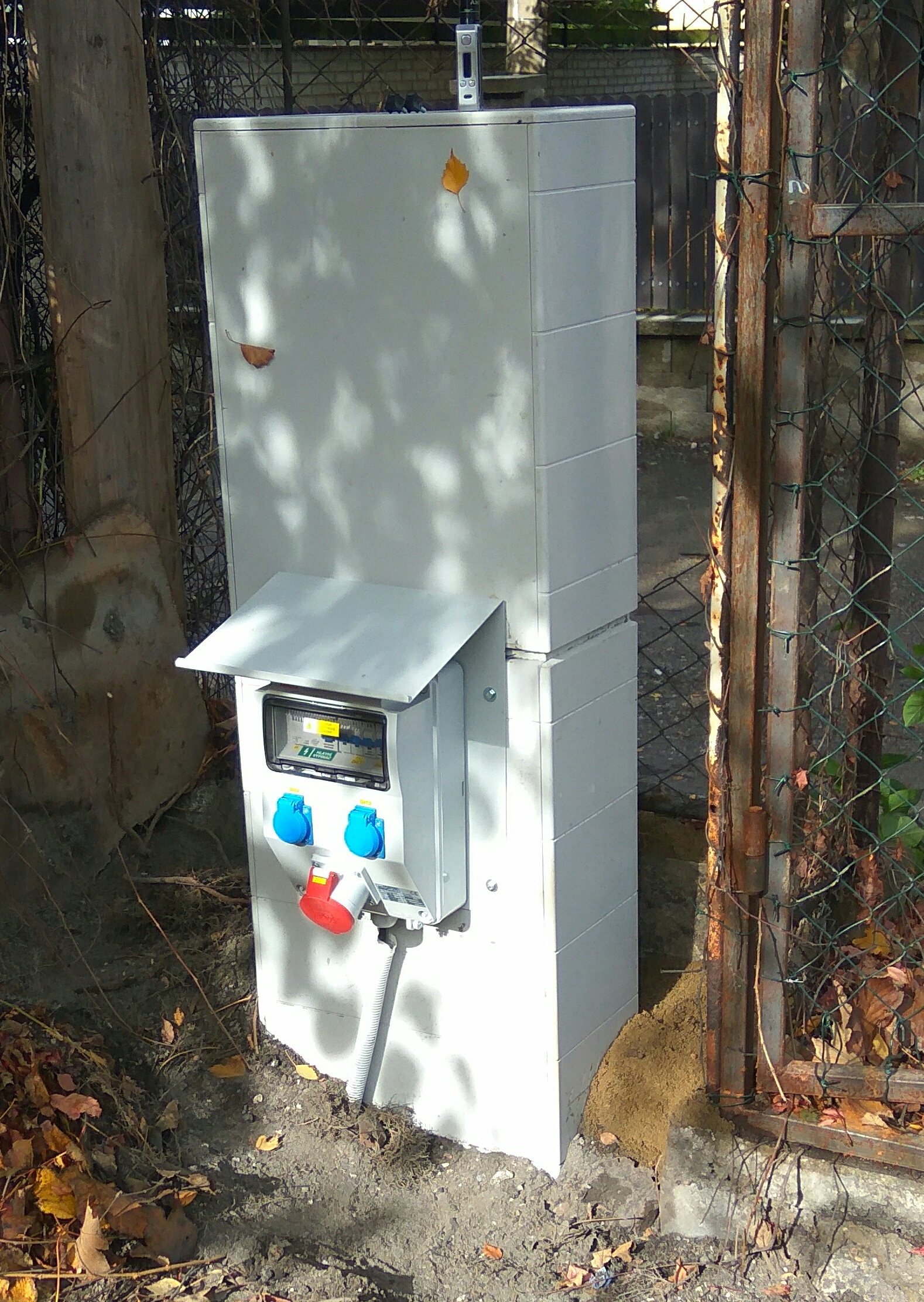 Pojistková skříň je plastová na podkladním plastovém pilíři, výrobce DCK Holoubkov - ta tam již je.