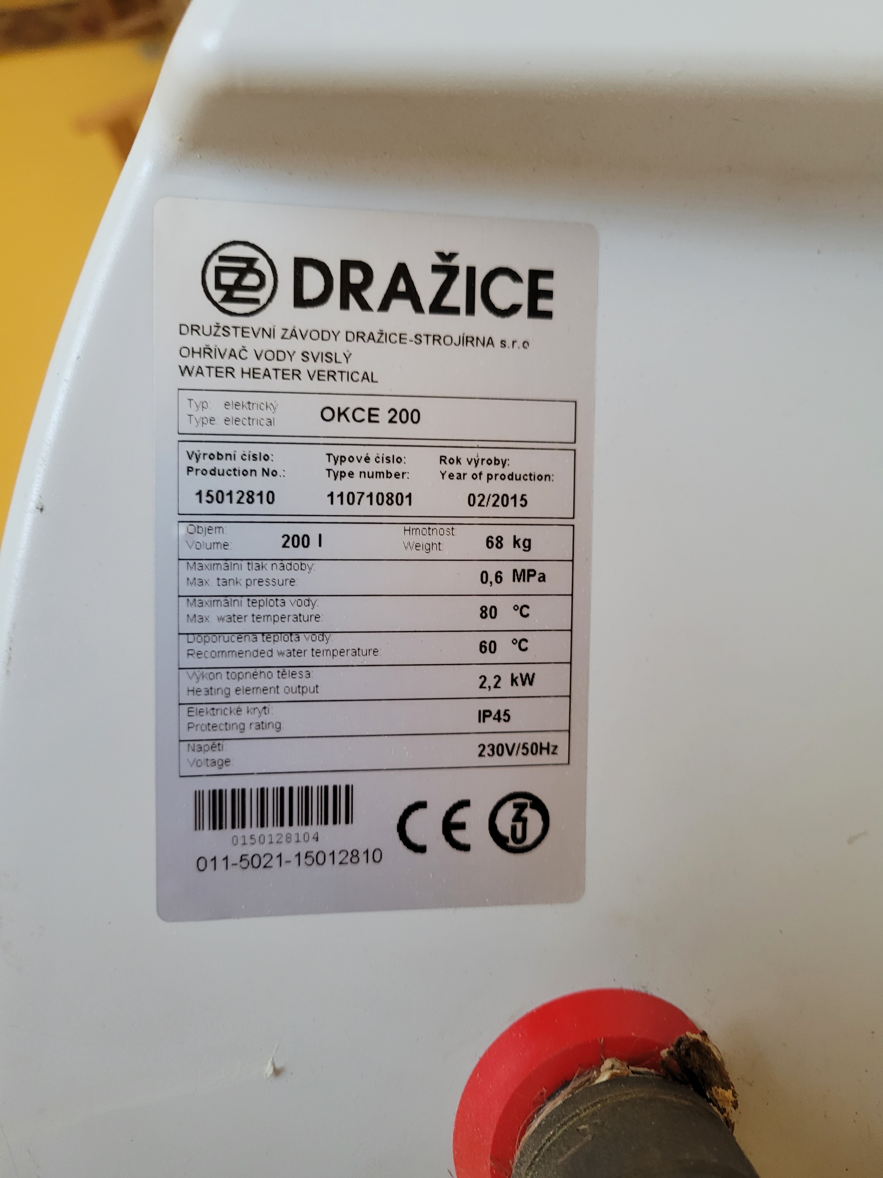 Ahoj, nabízím funkční bojler. Stáří 10 let, objem 200l, hmotnost 68 kg, výkon 2,2 kW. Více informací na fotkách (fotka se štítkem bojleru).