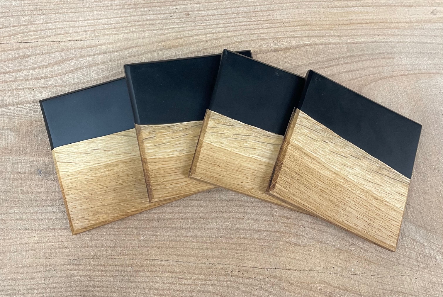 Nabizím ručně dělané podtácky z dubového dřeva a epoxidové priskyřice. Sada obsahuje 4 ks. Každý podtácek má rozměr 10x10x1cm. Jedná se o nový a nepoužitý výrobek z české truhlářske dílny.