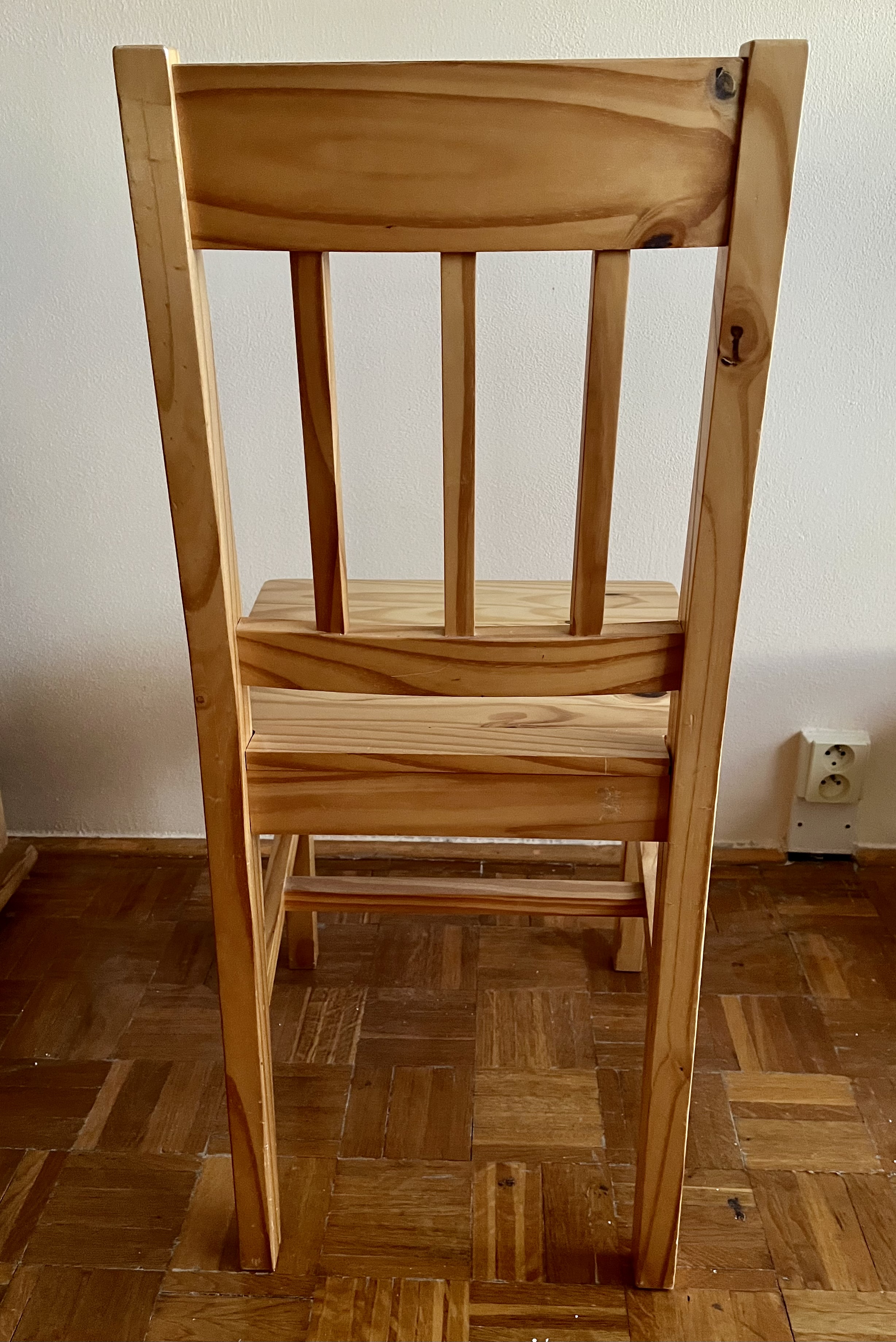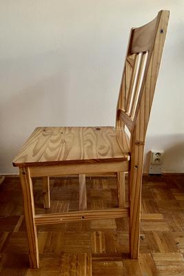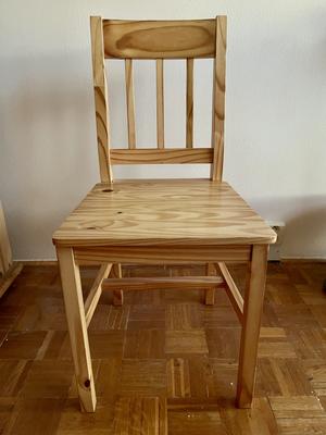 Stůl 135 x 47 x 78 cm Velmi dobrý stav, na desce patrné známky používání Židle též z masivu Vlastní doprava nutná (Liberec)